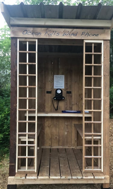 Nestled in a quiet spot at the water's edge in the picnic area at Link Lake is the Ocean Falls Wind Phone, a place to send a message on the wind of all the things you want to say to lost loved ones.