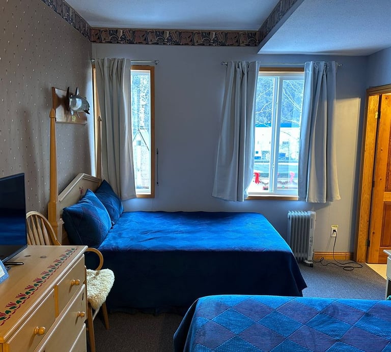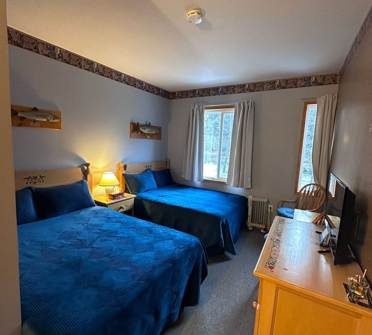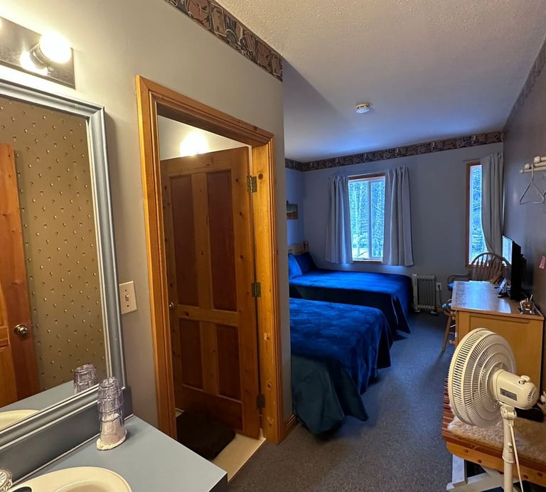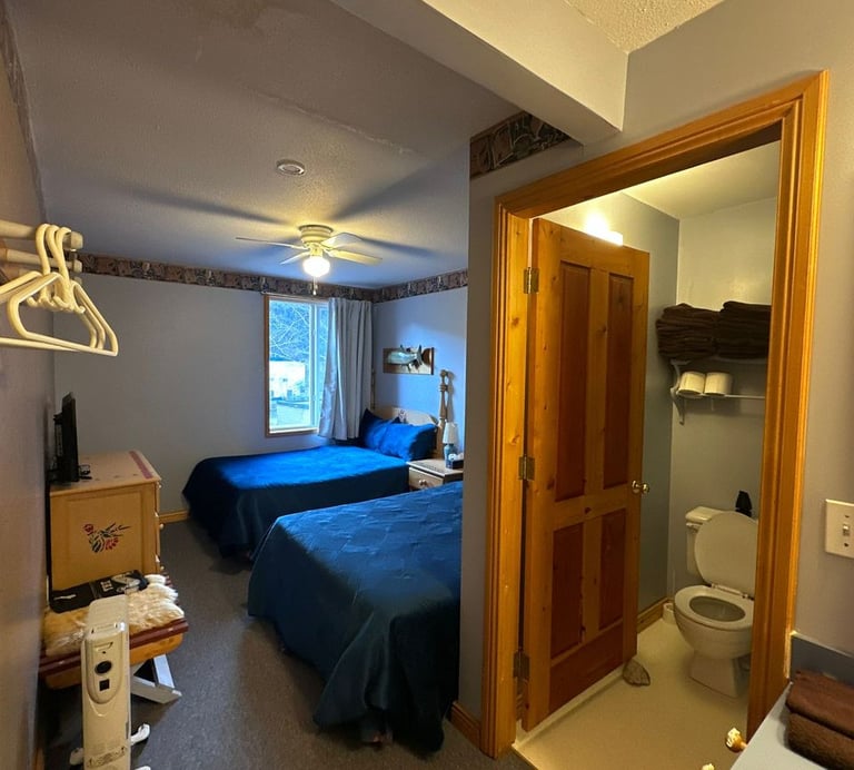 Room 3 or 4 have 2 double beds and 4 piece bath each. Full family-style meals will be served to all guests in the great room with fireplace. Packed lunches will be provided as requested for day trips & there is help-yourself coffee/tea/fridge available 24/7.